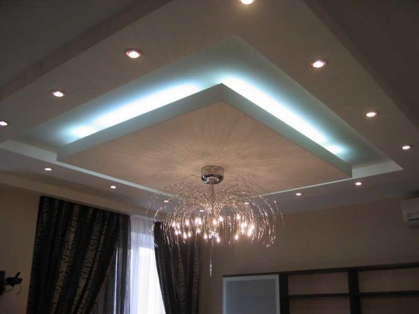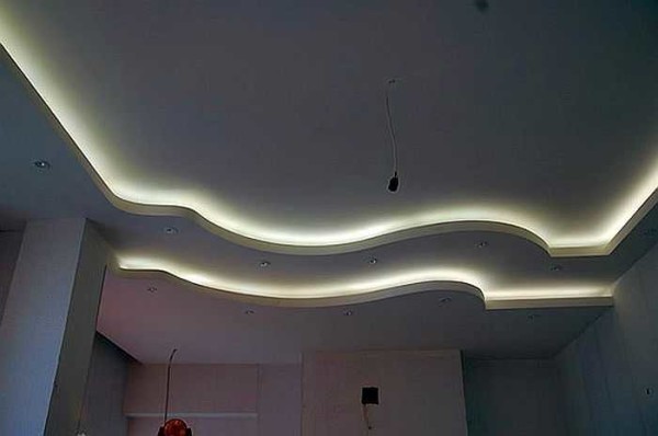Как можно оформить потолок из гипсокартона с подсветкой (фото)