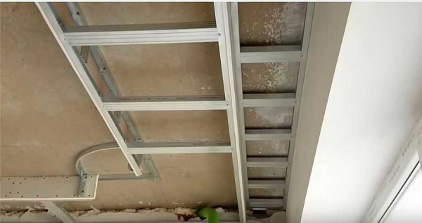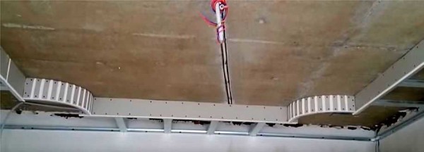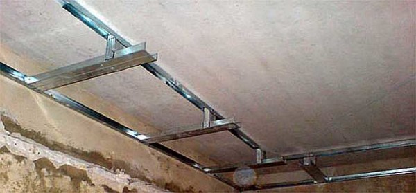 Только при больших расстояниях от несущих стен надо несущий профиль дополнительно фиксировать или к потолку, или к профилям предыдущего уровня. Удобнее делать это при помощи подвесов.