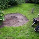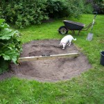 Копаем котлован. Решили, что борта будут на 1-2 см выше уровня дорожки — меньше будет мусора внутри, а края украсим камнями