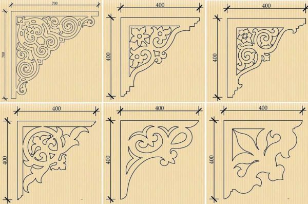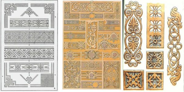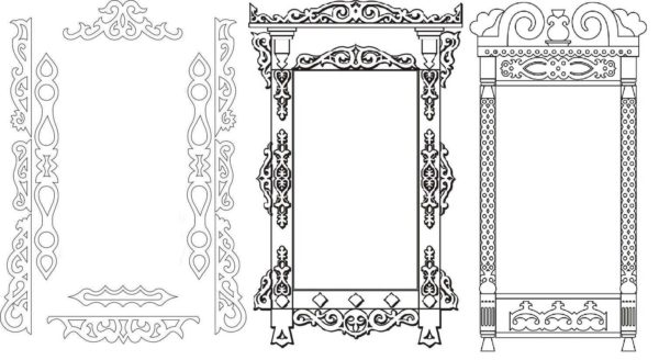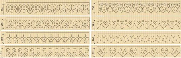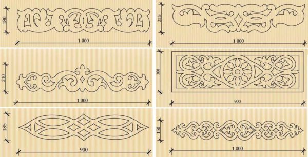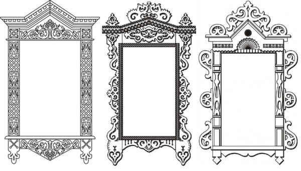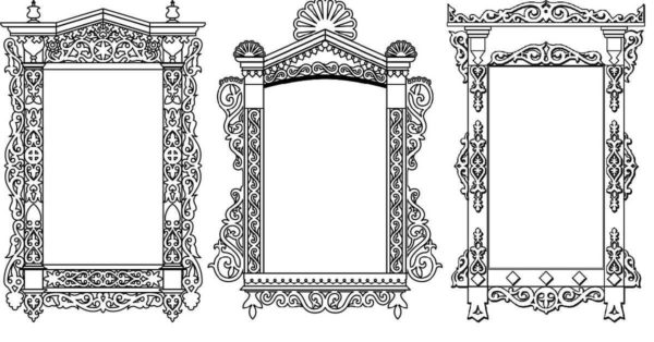 Простые резные наличники можно делать и без шаблонов. Несколько примеров будет в видео — там показано, как расчертить, как вырезать. Но более-менее сложные узоры рисовать самостоятельно получится далеко не у всех. Нужен навык, да и талант. Самый простой способ — найти схему, распечатать ее в нужном размере, перенести на картон и вырезать. Получится шаблон, который можно обводить.
