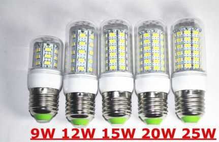 • В виде обычной лампы — грушевидный пластиковый плафон со стандартным цоколем. Есть подвид — «кукуруза». Несколько светодиодов собраны в единый светильник. Удобны тем, что можно ставить в обычные светильники на 220 в, так как преобразователь напряжения находится в патроне. Свет дают яркий, греется только задняя часть колбы, причем в разы меньше чем у «лампочки Ильича».