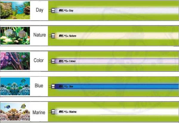 Некоторые типы специальных люминесцентных ламп для аквариумов