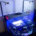 Но не всегда близкое расположение возле воды — благо. Если используются лампы, которые выделяют большое количество тепла, приходится ставить кулеры (вентиляторы) или поднимать их над аквариумом. В этом случае можно использовать подвесы и упоры. Тут кто как приспособится — варианты есть разные.