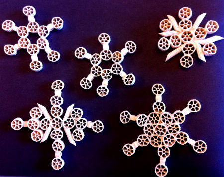 Как сделать снежинки из макарон.