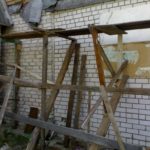 Устанавливаются треугольники армянских подмостей каждый метр