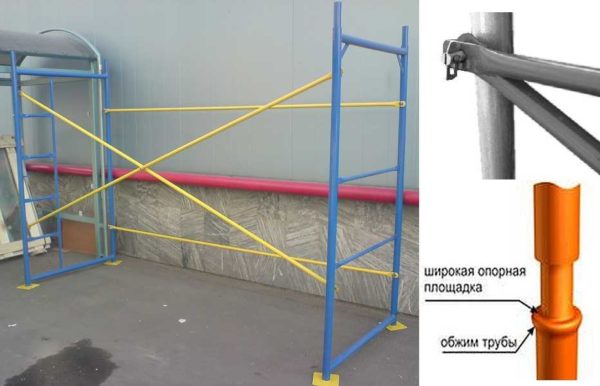 Рамные леса — принцип крепления поперечин и укосин