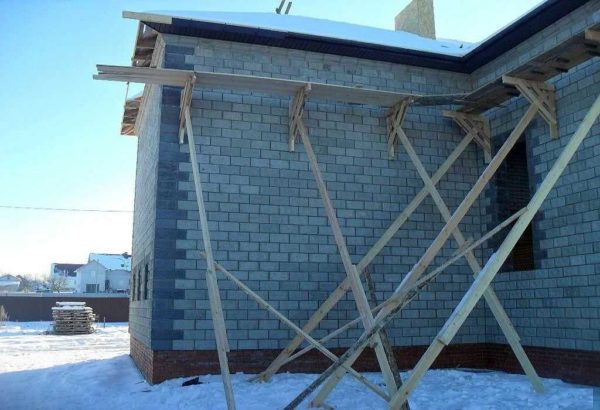 Установленные упоры сбивают укосинами
