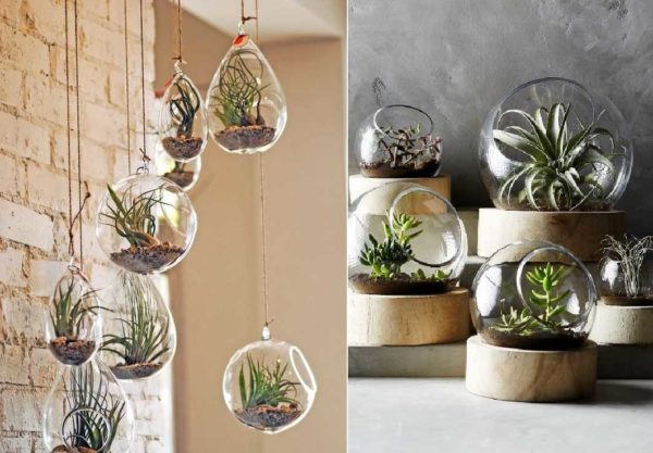 Необычные интерьерные украшения из мини-флорариумов в стеклянных шарах