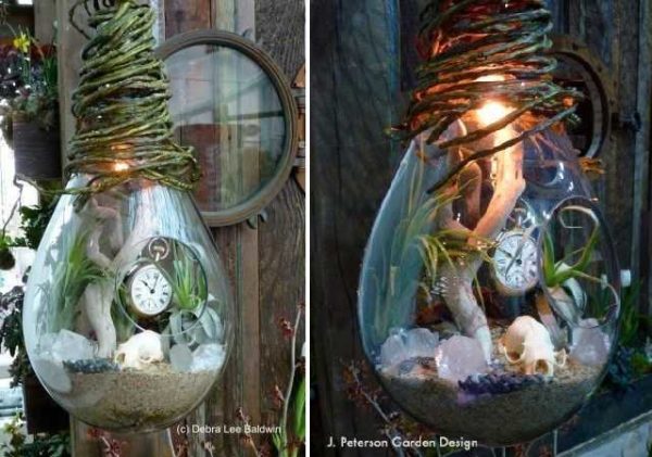 Лампа из флорариума решает сразу две проблемы: освещение и подсветка растений