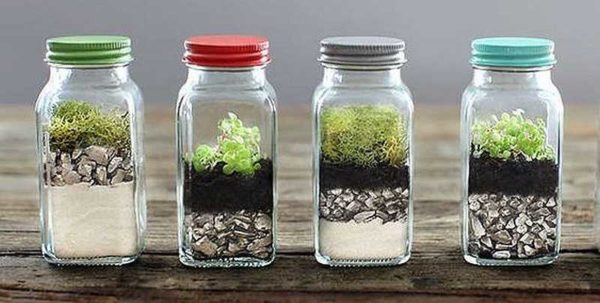 Мини-сад может быть и в самых обычных банках. Важно, чтобы стекло было белым и прозрачным