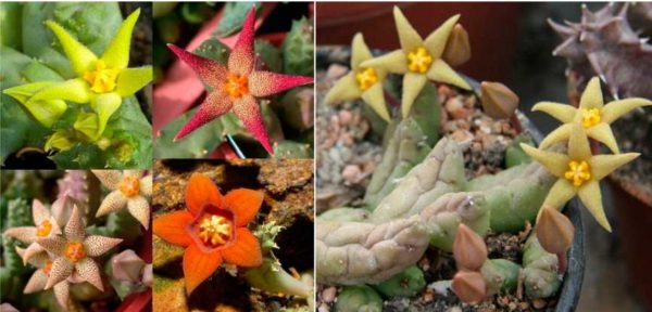 Имеет очень необычную форму — стебли стелющиеся, состоят из сегментов. Каждый из сегментов имеет несколько «зубчиков». В сочетании с необычной окраской — различные оттенки зеленого и коричневато-зеленого, звездчатой формой цветов — это растение привлечет внимание. Может быть центром композиции. Требования к уходу невысокие, следует только в летний период беречь от прямых солнечных лучей.