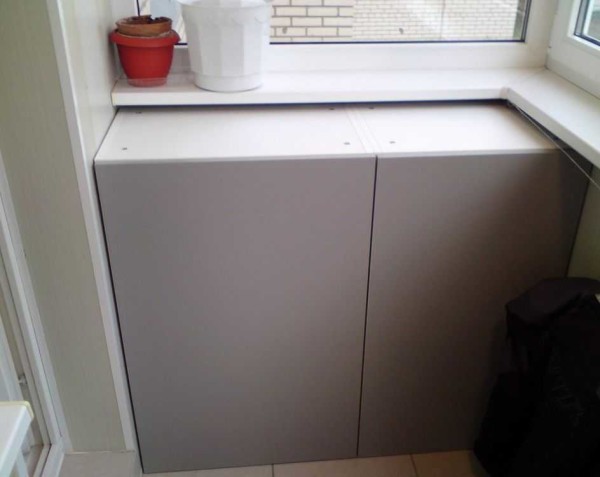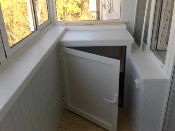 При полном остеклении балкона можно сделать шкаф высотой до подоконника