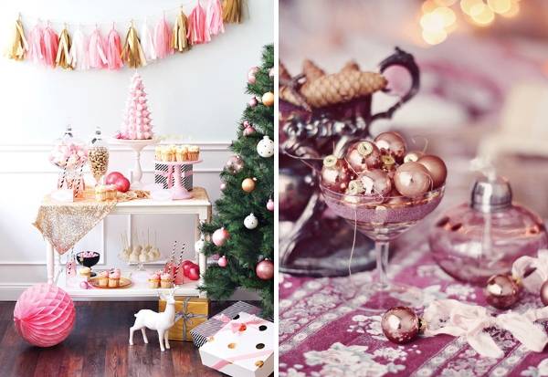 Золотой, медный и прочий декор в теплых оттенках «металлик» находится на пике популярности последние пару лет и, судя по всему, не собирается сдавать позиции. Их блеск и теплота идеально подходят для украшения дома на Новый год, но особенно выигрышно они будут смотреться в сочетании с неожиданными для этого праздника пастельными оттенками розового, мятного и бирюзового цветов.