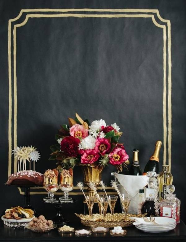 Глубокие темные оттенки являются основой этого стиля. Жизнерадостная атмосфера праздника поддерживается с большим количеством блестящего декора и выразительными текстурами. Контраст между матовым и глянцевым, грубым и мягким — вот что здесь главное.