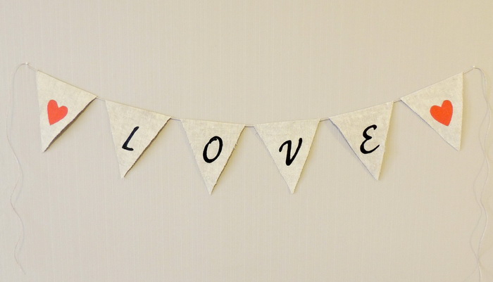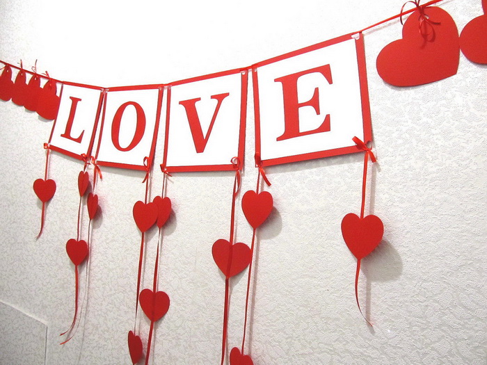 Чтобы поздравить свою вторую половинку с Женским Днем, посреди гостиной под потолком можно подвесить гирлянду с праздничной надписью или признанием в любви.
