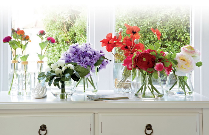 Так как главная задача на 8 марта — создать весенний интерьер, значит, нужно умело сочетать сочные и нежные цвета в оформлении стен и текстиля. Хорошо, если Ваша гостиная оформлена в белом варианте или пастельных тонах. На фоне светлых стен очень «свежо» и по-весеннему смотрятся яркие аксессуары.