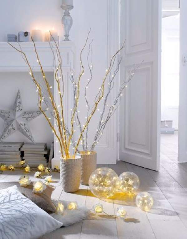 В наше время приобрести гирлянды совершенно не сложно. Они продаются различных видов, длины и форм по довольно приемлемым ценам. Купив несколько гирлянд, можно не раскошеливаться на приобретение дорогого декора. Существуют разные способы, как украсить комнату гирляндой на Новый год. Прежде всего ею должна быть украшена новогодняя елка, так как будет создаваться красивый отблеск игрушек. Гирляндой можно украсить потолочную поверхность, распределив ее по натянутым и укрепленным заранее нитям. Также очень эффектно смотрится окно со светящимися светодиодами, словно падающими с неба. Это оформление порадует не только вас, но и проходящих на улице людей, создавая предновогоднее настроение. С помощью гирлянды украсить комнату к Новому году своими руками можно необычайно оригинально, если ее россыпи заполнят собой целую стену.