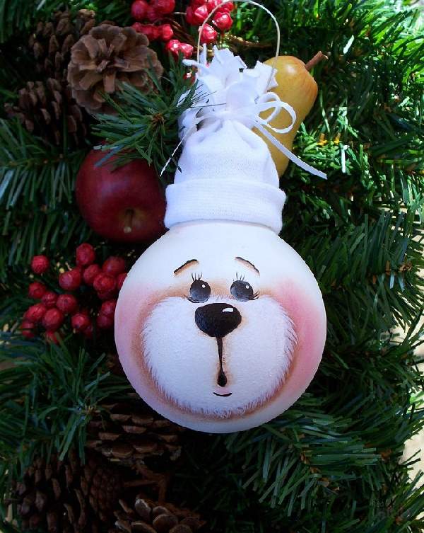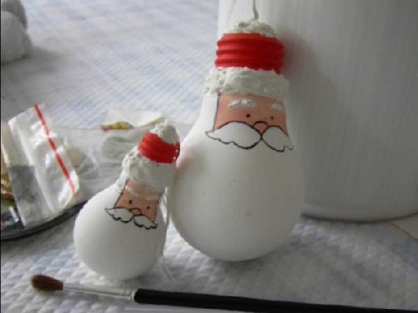 Небольшого снеговичка можно довольно легко сделать из помпонов и для этого их понадобится три штуки разных размеров. Чтобы сделать помпон, необходимо белую нить намотать на два пальца 170 раз (следующий — 150 раз и третий — 100 раз), перевязать посередине поперек, а все сгибы разрезать. Помпоны аккуратно подравнивают ножницами. Их можно скрепить между собой нитью либо нанизать на коктейльную трубочку. Глаза, рот, ручки и прочие элементы можно сделать из прутиков или картона. Перед тем, как украсить сказочно комнату на Новый год, нужно принять во внимание назначение комнаты. Если это гостиная, можно добавить в интерьер дедов морозов, оленей и милых собачек. Маленьких фей, гномов и прочих существ оставить для детской. Чудесного деда мороза можно сделать с помощью обычной электрической лампочки, разрисовав ее акриловыми красками. Также наносят изображения и зверушек: собачек, пингвинов и пр. Такие игрушки можно подвесить на карниз, к люстре, разместить их на полочках.