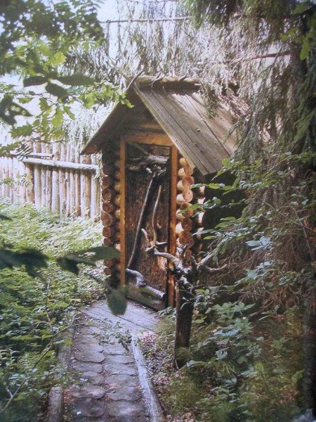 Эти постройки порой появляются раньше заборов, ведь без них — беда. Строители будут осваивать все близлежащие закутки, а кому, интересно, это понравится. Так что самая необходимая, пожалуй, постройка на участке — туалет. А с чего это мы о туалетах, применительно к украшению участка? А потому, что и эту постройку можно сделать так, что ее не обязательно будет прятать. Выставлять на показ — тоже не вариант, но и маскироватьне потребуется. Например, стандартный домик-скворечник можно сделать из бревен. Получится мини-избушка.
