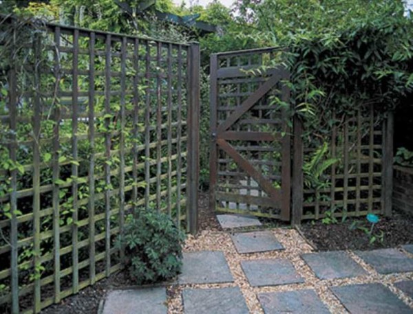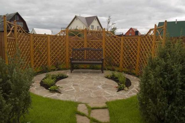 Для внутреннего разделения участка такие основательные ограждения ни к чему. Для сада-огорода можно поставить решетку, сделанную из тонкого бруска, вырастить живую изгородь, сплести плетень.