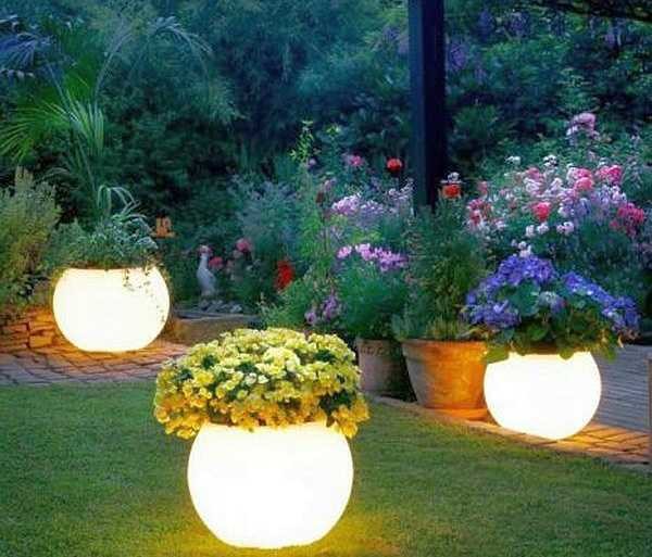 Хотите удивить друзей и соседей? Покрасьте вазоны люминисцентной краской. С наступлением темноты они будет светиться, придавая вашей лужайке необычный вид.