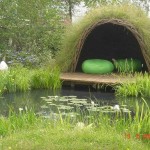 Пожалуй, второе после клумб, любимое украшение участка — пруды и прудики. Живописное сочетание воды и растений завораживает, дарит прохладу летом. Оформление водоемов — процесс творческий и стилей тут тоже много. Можно сделать вокруг настил из досок. А чтобы не мучатся с их покраской и пропиткой, они могут быть не деревянными, а композитными — есть такой новый материал, по виду очень напоминающий древесину. Разница лишь в том, что он не гниет, не меняет цвет. Называется этот материал декинг. Его можно использовать для настила открытой веранды или террасы, возле бассейна. Пример его использования вокруг пруда вы видите на фото.