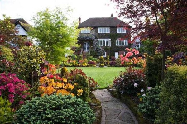Пышная растительность перемежается ухоженными газонами — признаки английского сада