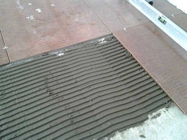 Так как керамогранит имеет очень низкую гигроскопичность, класть его на обычный цементно-песчаный раствор — зря тратить время и деньги. Вода в поверхность данного материала не впитывается, и плитка практически не держится. Именно при таком клеящем составе отделка «отскакивает». Адгезии с раствором почти нет.
