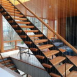Большое количество столбов на лестнице необходимо, если балясины делают тонкие или заполнение — не вертикальные, а продольные «нитки», которые нагрузку не несут, а выполняют защитные и/или декоративные функции.