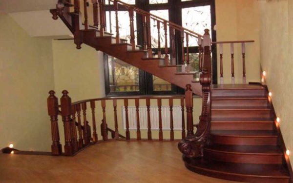 Чаще всего опорные столбы располагают вначале и в конце лестничного пролета