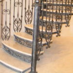 Кованная ограда для лестницы с боковым креплением. Крепеж делают сразу «встроенным» в перила
