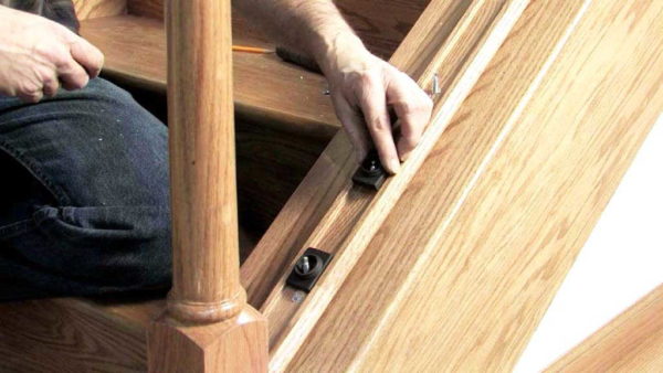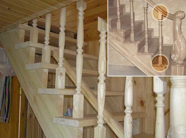 Есть один специфически метод,рассчитанный именно на лестницу с тетивой. Делают подбалясенник: планку, которая «садится» на тетивы благодаря вырезанному в нижней части пазу. К подбалясеннику крепятся стойки насквозь — болтами, шкантами или саморезами (худший вариант). Выбор за вами, а потом вся конструкция устанавливается на тетиву. Соединение — клеевое, можно для надежности использовать боты, саморзы, гвозди. Но они — для дополнительной фиксации.
