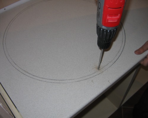 • В сплошной столешнице высверливаем отверстие под чашу.