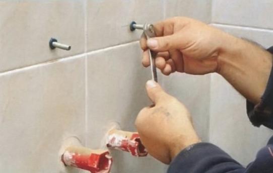Важно: Если поверхность стены выложена плиткой, будет правильно наметить места под крепеж по линии межплиточного шва.