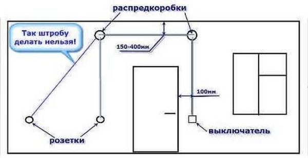 Это общие правила, которые касаются штробления стен под проводку.