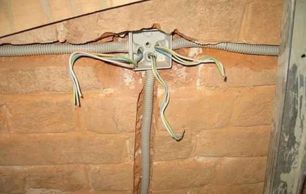 - При подводе к розетке или выключателю глубину штробы можно немного увеличить — чтобы провод хорошо зашел в монтажную коробку. Но и в этом случае нарушать металлический каркас нельзя.