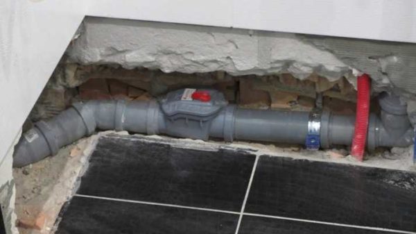 При этом часто приходится разбивать пол, уложенную уже плитку — надо совместить отверстия в корпусе с трубами, отцентровать все, проследить за требуемым углом наклона. Особенно «радует» такая перспектива если недавно сделан ремонт. В этом случае тоже есть вариант — врезать обратный клапан в стояк выше вашего входа. Но на такие работы — вмешательство в общедомовую систему (установка сантехнических приборов на вашем отводе под эту категорию не попадает), а на них требуется письменное разрешение, придется оповещать жильцов, перекрывать воду, работать будут представители эксплуатационной организации или водоканала. В общем, морока та еще, потому такой способ решения проблемы применяют очень редко.
