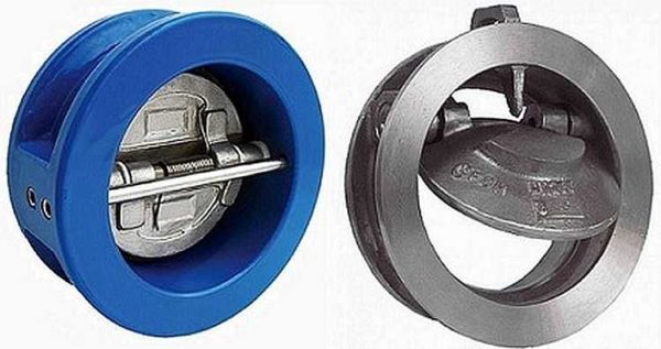 Этот тип обратных клапанов многим нравится больше из-за своих миниатюрных размеров. Это совсем небольшой цилиндр, внутри которого установлена поворотная заслонка. Она может состоять из двух частей, которые крепятся к центральному стержню, а может выглядеть как небольшая тарелка, в одном месте при помощи пружины прикрепленная к стенке корпуса.