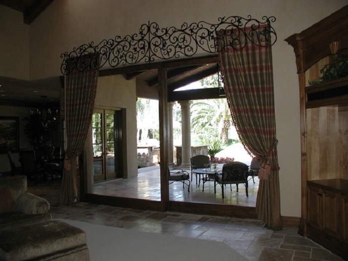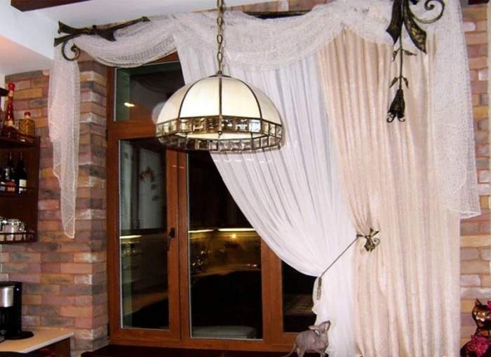 Этот вид признан одним из наиболее надежных. Металлические конструкции могут быть совершенно разнообразной отделки, благодаря чему, способны навеять помещению элемент эпохи средневековья, дополнить стиль хай-тек либо подчеркнуть простоту деревенского стиля. Металлические карнизы для штор изготавливают из разных металлов и их сплавов. При этом наносятся специальные покрытия, которые защищают основу от коррозии и повреждений. Окрашивают поверхность с имитацией стали, золота, бронзы или серебра. Такой вид, как кованые карнизы для штор (фото отображает примеры авторских форм) также входят в группу металлических. Такие конструкции могут быть дополнены своеобразными отделочными элементами, включающими наконечники в форме стрел, растений, цветов и прочие.