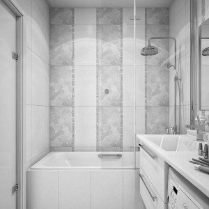 • Если речь идет о хрущевках, то и того меньше, а значит, кафельная плитка для маленькой ванной также должна быть маленького размера, чтобы органично смотреться на стенах и на полу.