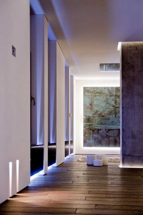 На нижнем этаже, где и начинается зеленая стена, находится вторая гостиная и кабинет, откуда можно попасть в великолепную спальню.