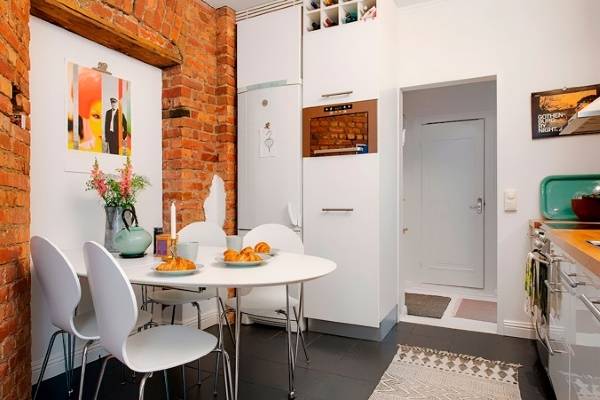 Если вы живете не в кирпичном доме, то обратите своё внимание на вариант использования плитки под кирпич («кирпичный винир»). Она достаточно тонкая и не уменьшит площадь комнаты, в отличие от настоящей кирпичной кладки.