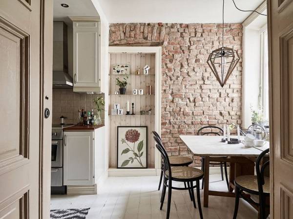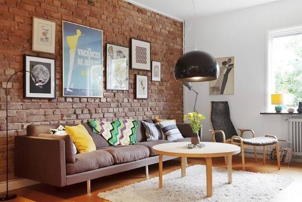 С чем сочетается кирпичная стена в интерьере