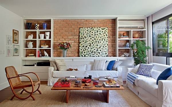 • Белая кирпичная стена в интерьере — очень модный и элегантный вариант;