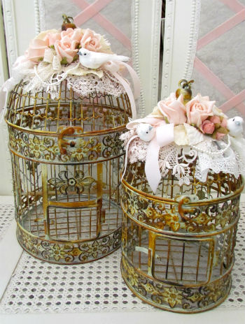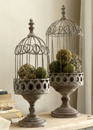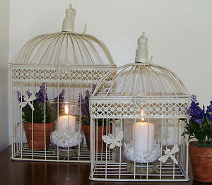 Наиболее интересно смотрятся классические, винтажные клетки для птиц с множеством изящных деталей, бронзового или белого цвета. Кроме того великолепно выглядят состаренные клетки с потертостями, сколами, небольшими гнутыми прутьями или вовсе с частичным отсутствием прутьев. Такие изделия великолепно впишутся в интерьеры, выполненные в стиле Шебби Шик, Прованс, Кантри и Фьюжн.