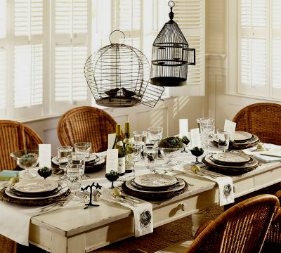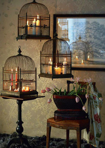 Еще примеры декора интерьера птичьими клетками: