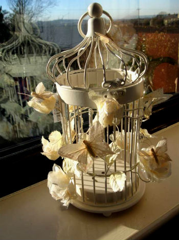 Кроме того такую клетку можно декорировать посезонно, зимой — ее можно заполнять елочными шарами и мишурой, весной — устанавливать вазочку с подснежниками или сиренью, летом — украшать искусственными бабочками и пчелками, осенью — создавать композицию из желудей, шишек, каштанов и пожелтевших листьев.