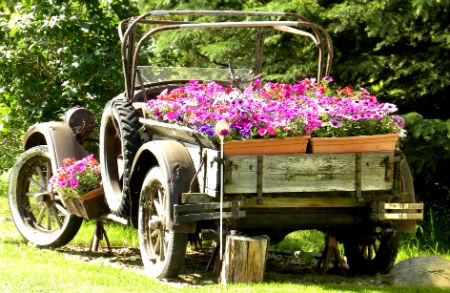 Ранее мы рассматривали, как на придомовой территории будут смотреться садовые мостики. Так же уделили внимание популярному в последнее время направлению в облагорожении ландшафта — стилю Кантри. Ну, а сейчас рассмотрим одну очень креативную идею: клумбу автомобиль или попросту клумбу машину.