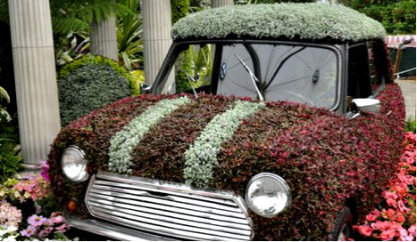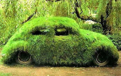 1. Высадить цветы в багажнике и под капотом (сами крышки капота и багажника можно удалить), причем землю засыпать вровень с корпусом авто, а после, по мере роста и соответственно плетения вьюнка, направлять его в нужные стороны.