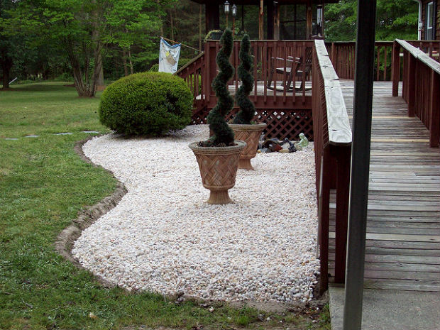 Гальку можно смело укладывать возле импровизированного прудика, она со временем отточится и станет еще красивее.